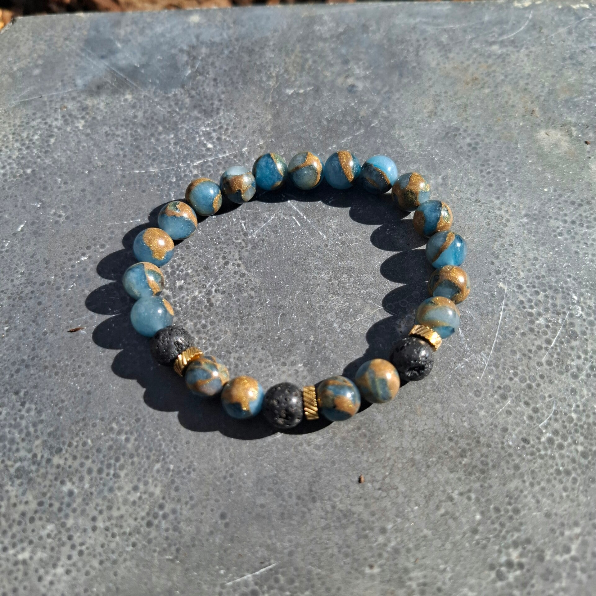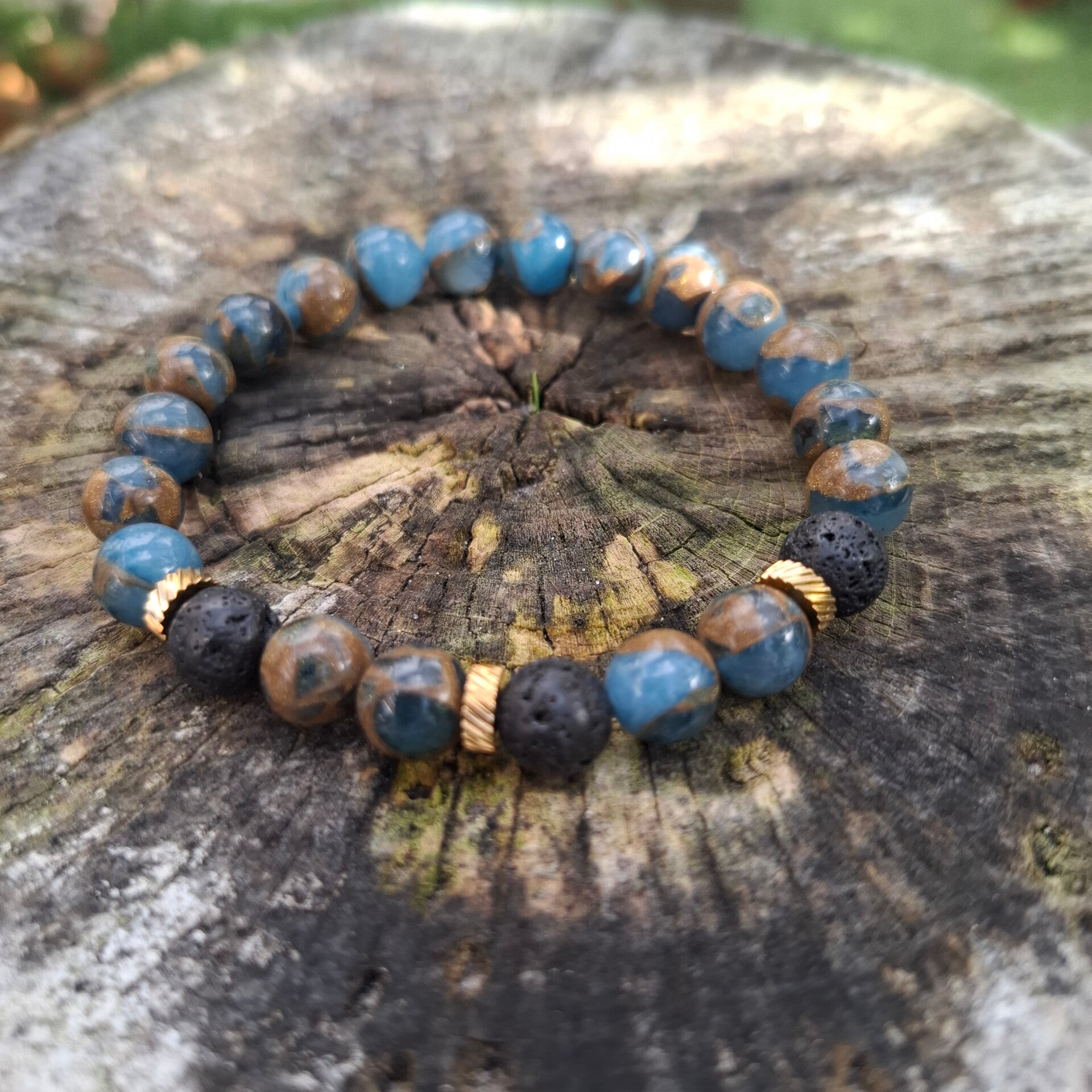 Stijlvolle en stoer verfijning combineert. De mix van lavakralen, gouden spacers en unieke cloisonné kralen maakt dit sieraad een opvallende toevoeging aan elke look van festival tot chique dagelijkse stijl.