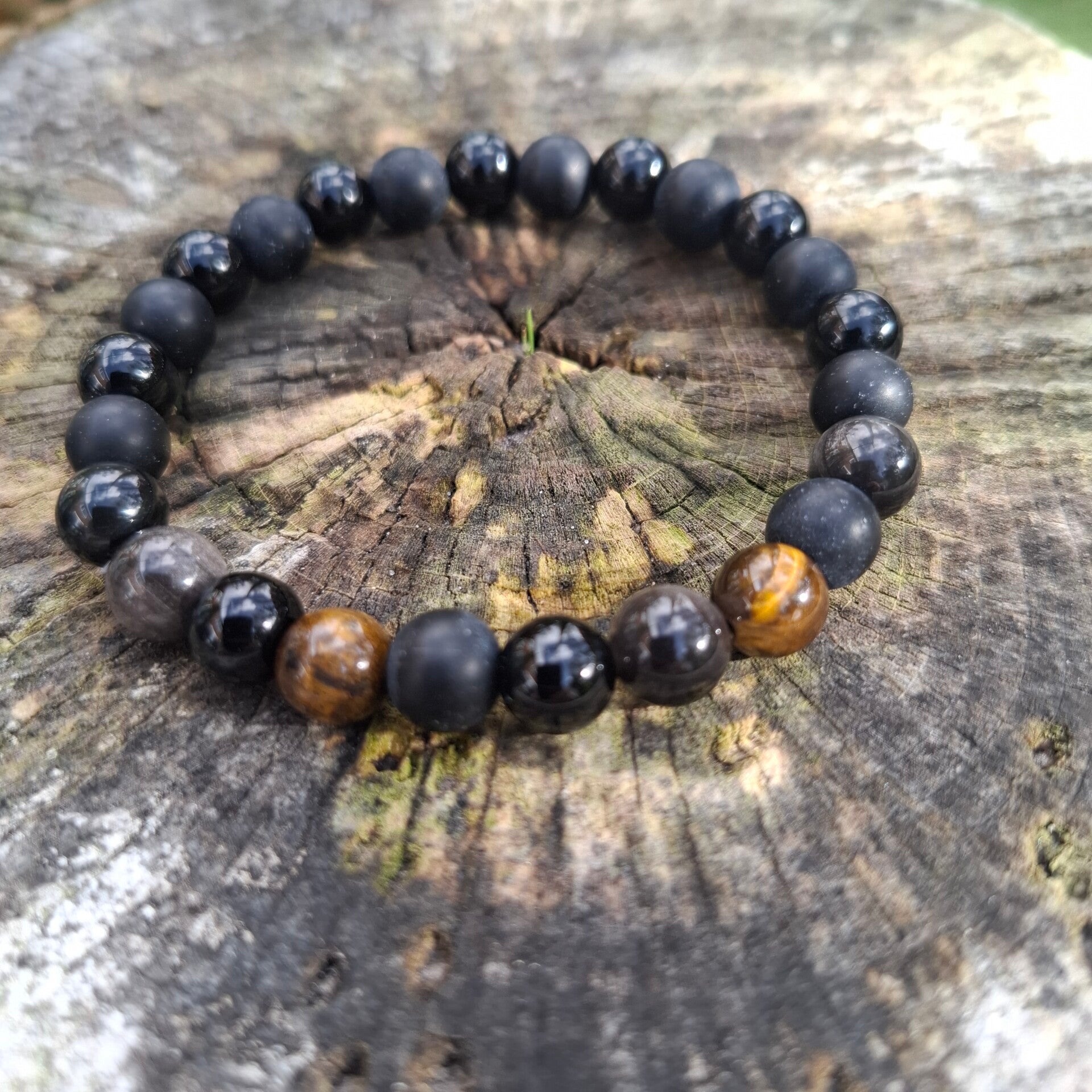 Ontdek de perfecte balans tussen kracht, bescherming en intuïtie. Deze unisex armband (17 cm) combineert warme en aardse tinten met een chique uitstraling. Handgemaakt met zorgvuldig gekozen edelstenen die niet alleen mooi zijn om te dragen, maar ook een diepe spirituele betekenis hebben.